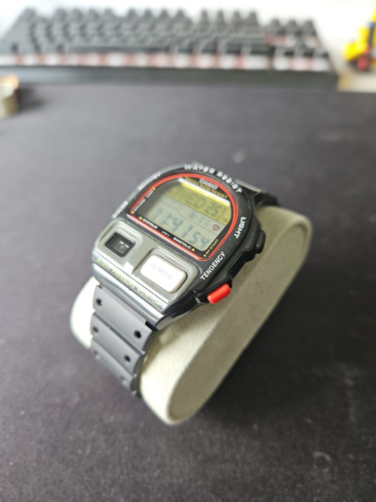 I installed a new battery, and the watch powered up without any problems. Finding an original BP-100 strap today is almost impossible. When you see one, the price is usually very high. To solve this, I matched the watch with a strap from the Casio SDB-500W, which fits perfectly and keeps the watch comfortable and wearable.