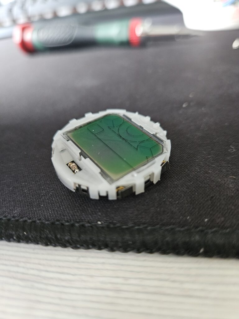 The old polarizing film on the LCD was applied badly and made the screen look green and pink from different angles. I removed it completely and added a new film. This restored the natural display look and made the digits easy to read.
