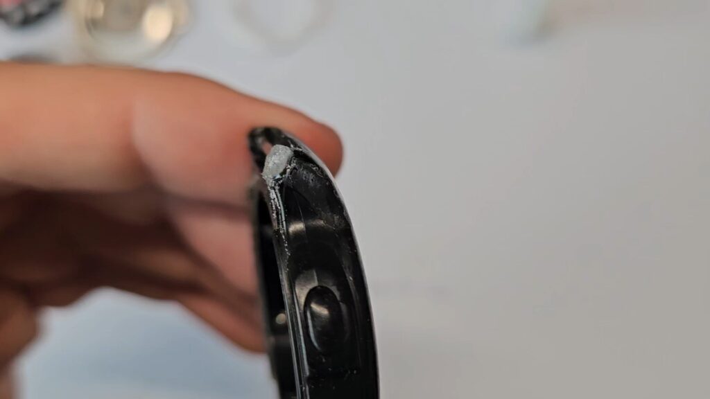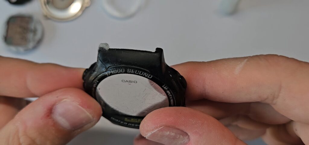 One lug was broken, so I rebuilt it using baking soda and super glue. After the repair hardened, I shaped it with a file tool, sanded it smooth, and painted it black with nail polish. To finish, I gave it a matte look with fine sandpaper so it blended with the original case.
