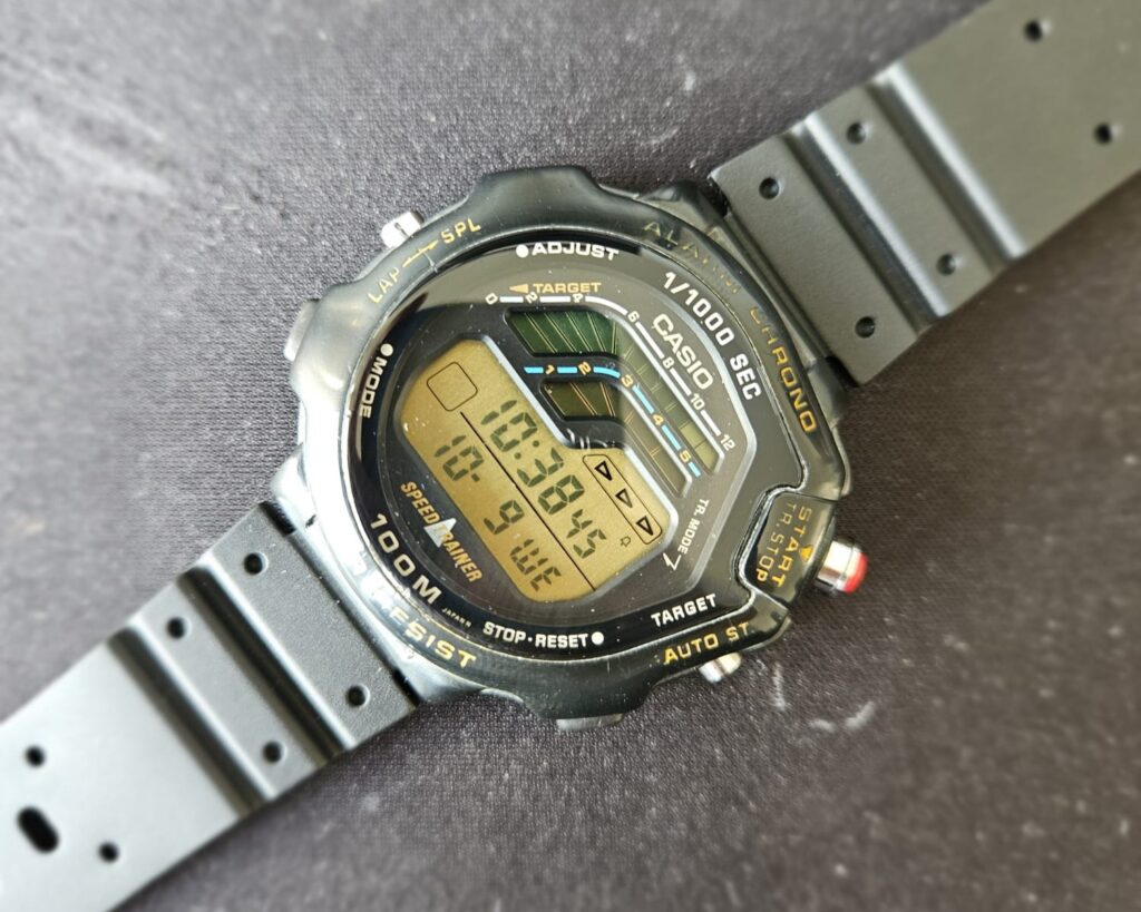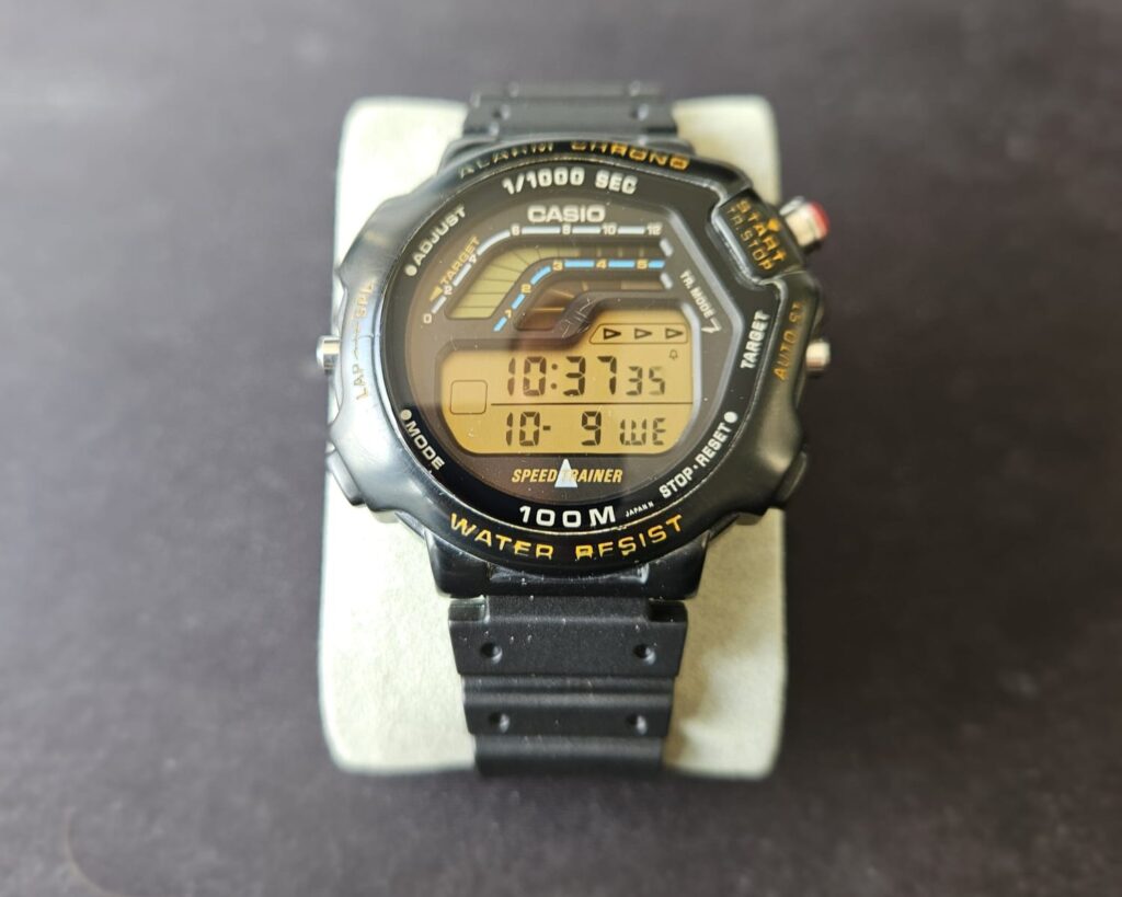 Casio STR-1000 Speed Trainer watch photographed from the side.