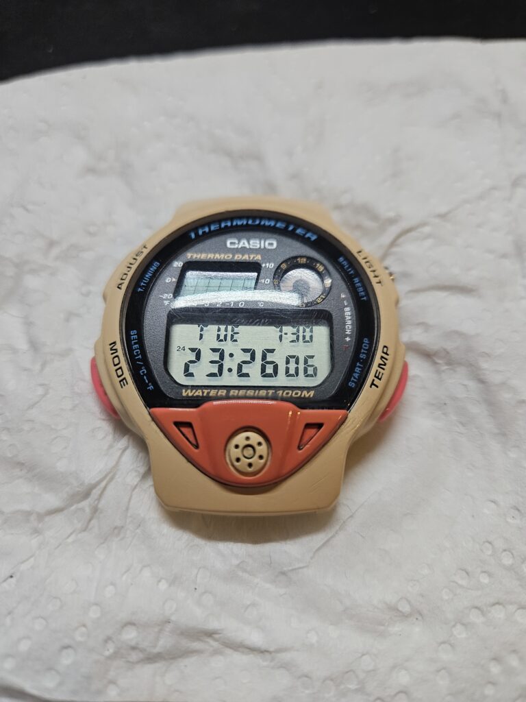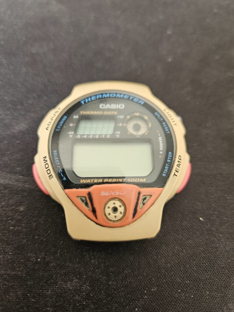 The Casio TS-200 is one of those early-90s models that doesn’t appear very often, especially in its white resin case. Most surviving examples have yellowed badly over time, so finding one that can still be restored is a rare opportunity.